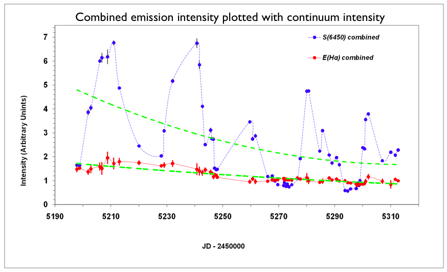 and basically subtracting the flux of the continuum filter from the H-Alpha filter. This meant that we could look at the temporal changes of the H-Alpha emission line and compare it to the evolution of continuum over time.